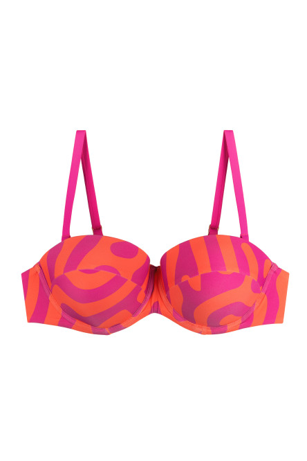 - оформената чашка с двустранно избутване от пяна поддържа гърдите отдолу и ги сближава;