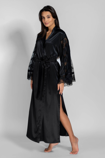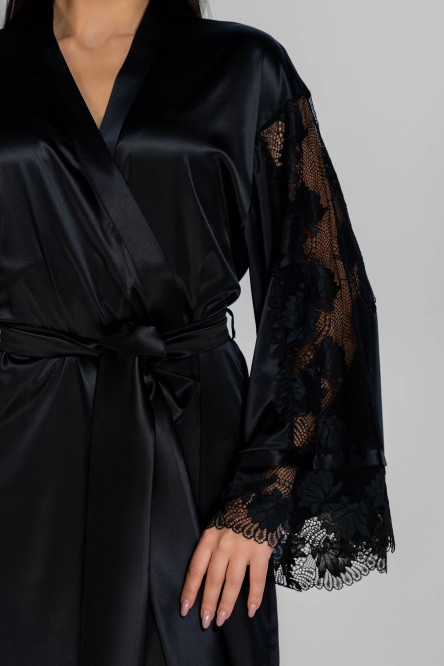 Дантелата с акцент на големи цветя, подобно на паяжина със сатенена драперия от конци, придава на визията деликатно и романтично усещане. Благородният блясък на дантелата е перфектно съчетан с деликатния блясък на сатена.
