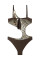- суцільнокроєні бретелі передньої деталі спрямовані через одне плече і з'єднуються з декоративним елементом;