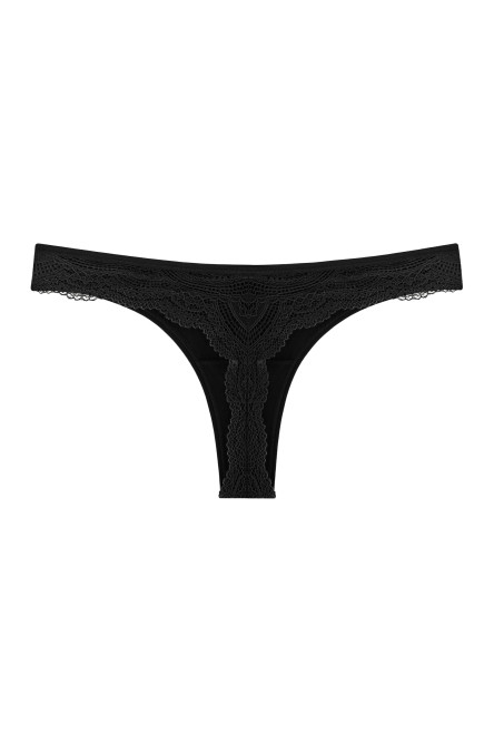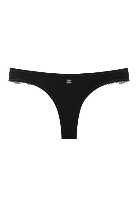 Cotton and lace thong low waist panty with V-shaped top edge: