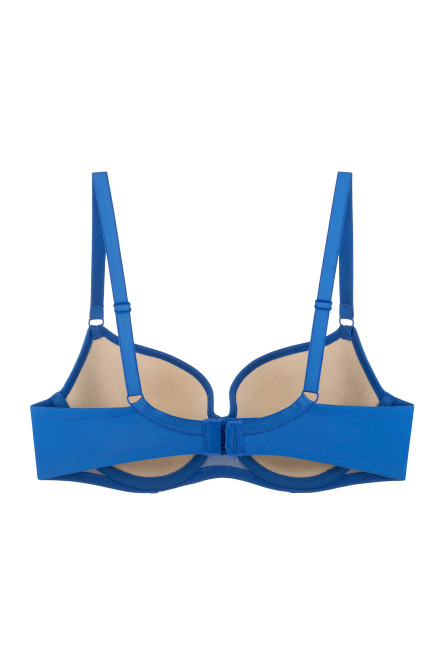 Balconette bra without push-up, made of embroidered mesh and microfiber, for women with medium-sized breasts:
