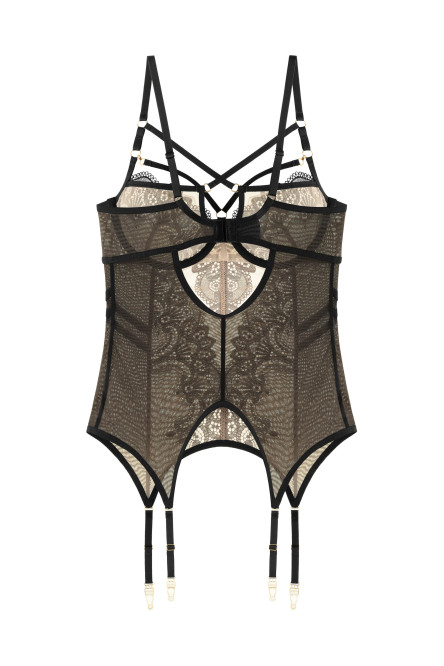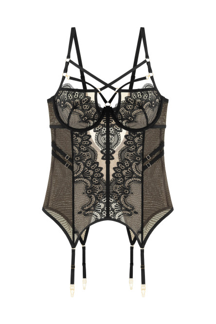 Корсетният сутиен (бюстие) Soft с жартиери от ефектна дантела и фина мрежа:
